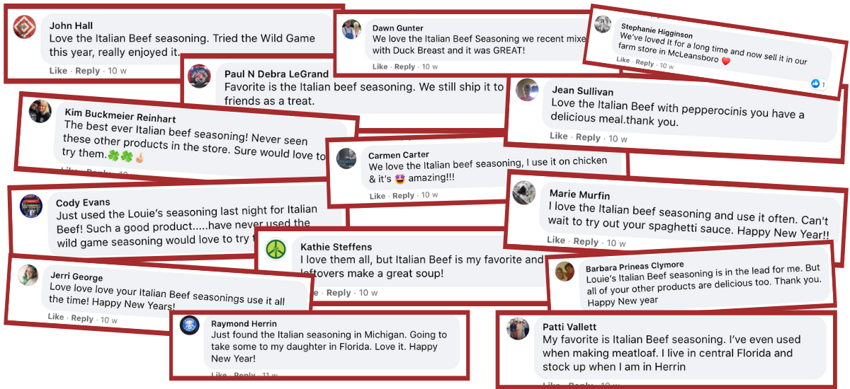 highest quality ingredients! Our core product, Louie’s Italian Beef Seasoning has become the cornerstone seasoning of our company and the product that has turned hundreds of customers (
